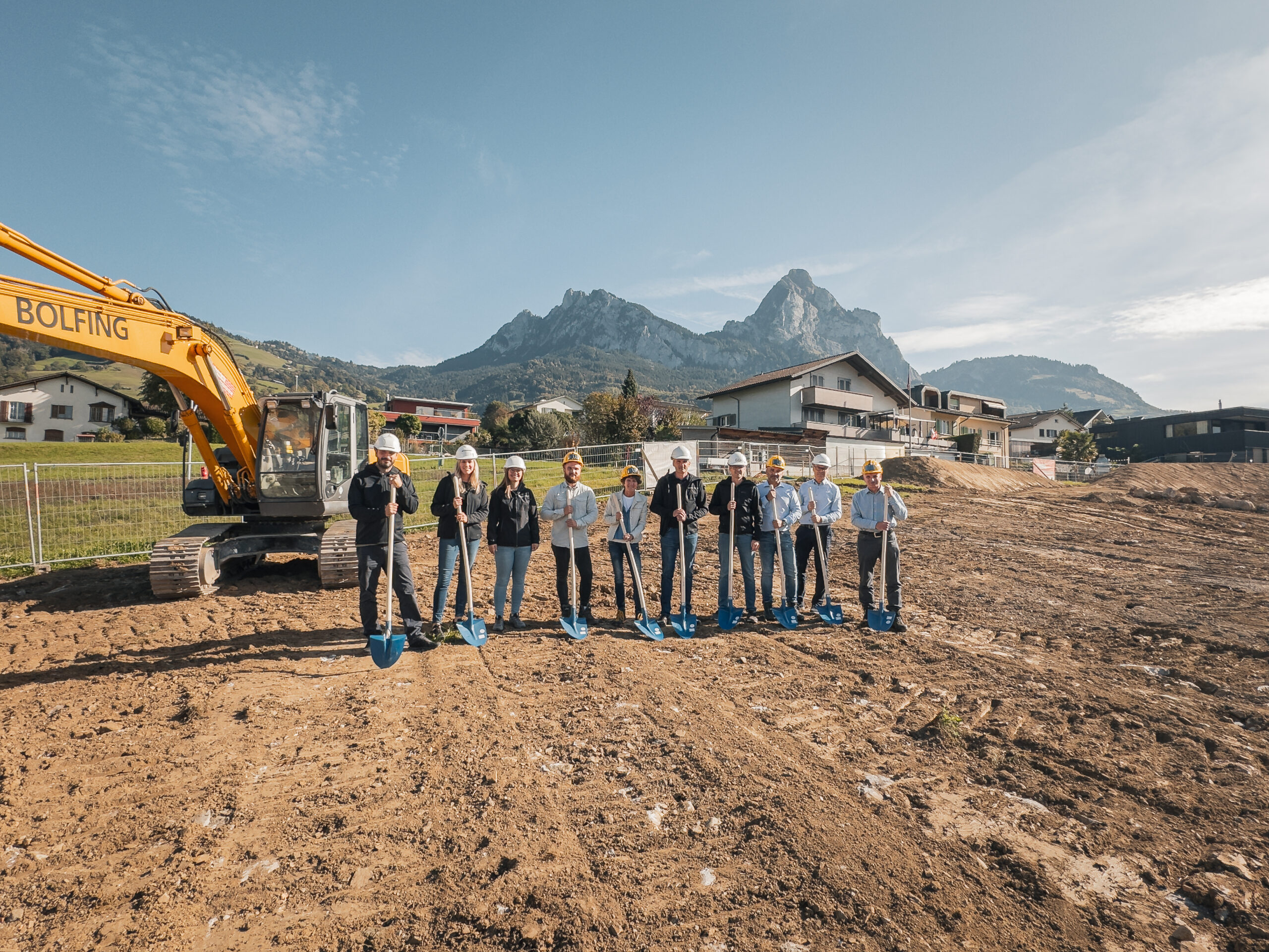 Der Spatenstich für die neue Überbauung im Grossfeld Seewen ist erfolgt. Nach abgeschlossener Vorbereitungs- und Planungsphase können die Bauarbeiten beginnen. Der Bezug ist voraussichtlich auf Ende 2025 geplant.