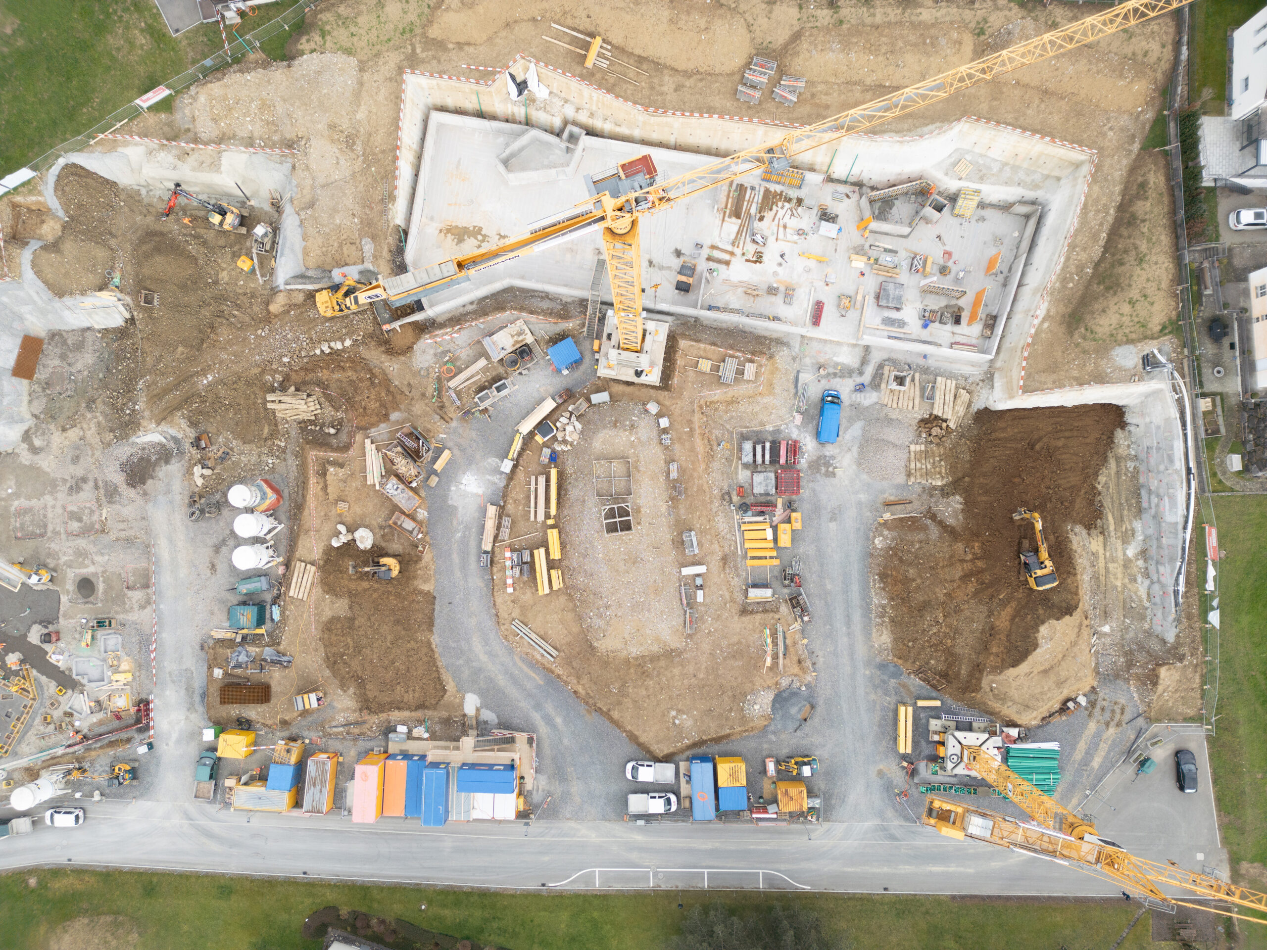 Die Tiefbauarbeiten sind in vollem Gange, und bereits in den beiden Häusern E und F wurde das Untergeschoss erfolgreich erstellt. Ein Meilenstein auf dem Weg zur Fertigstellung unserer exklusiven Wohnanlage in Seewen.